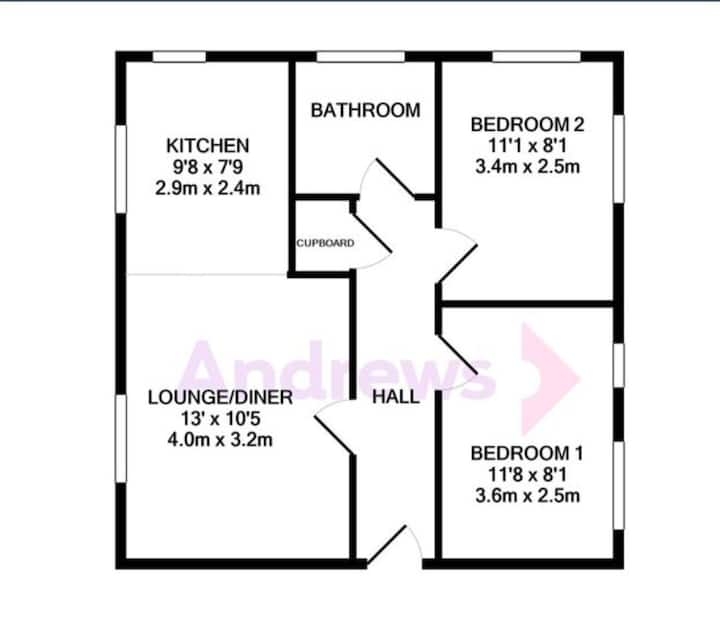 - vyumba 2 vya kulala