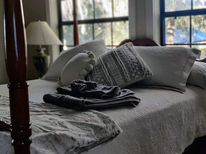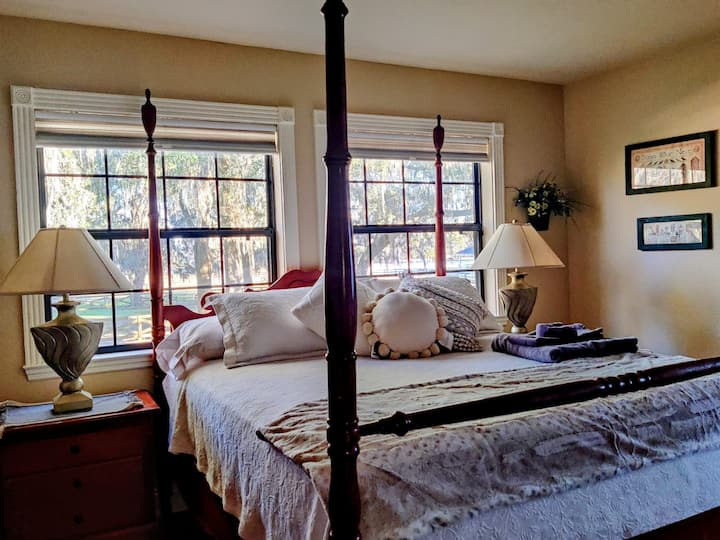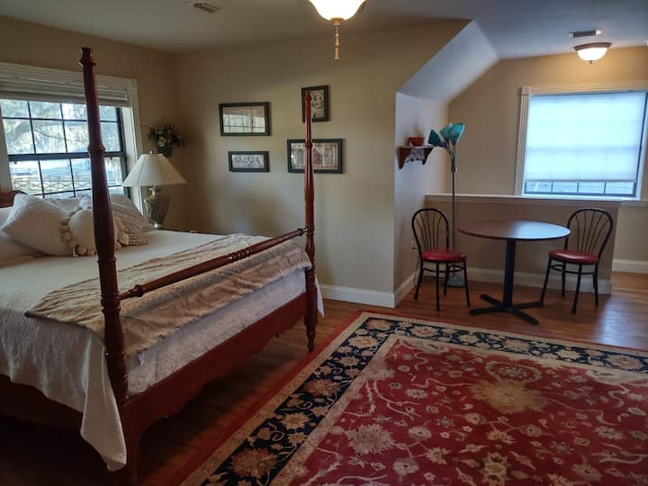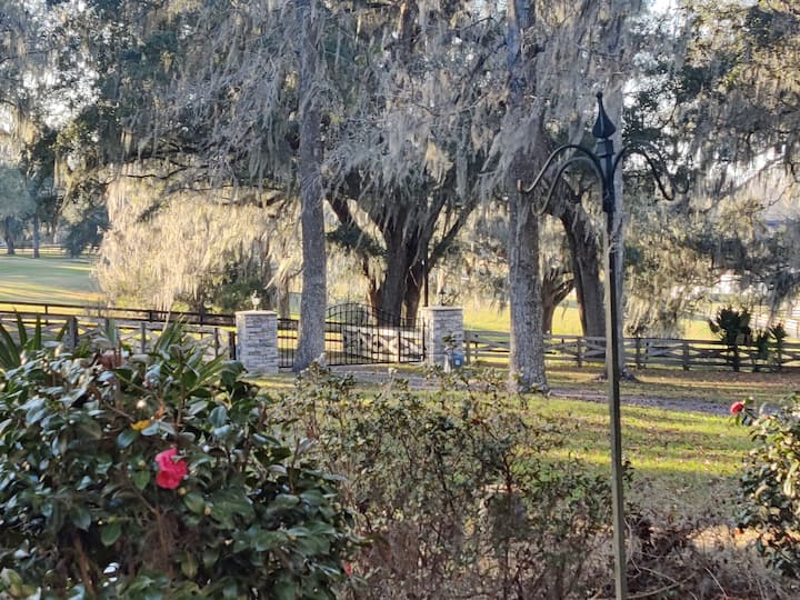 Tunatoa ghorofa yetu yenye nafasi kubwa, yenye ufanisi/studio kama sehemu ya mali ndogo ya kibinafsi katikati ya nchi ya farasi. Mlango wako tofauti ulio salama, chumba cha kupikia, bafu, kitanda cha malkia, nk. Leta farasi wako, tuna vibanda na maduka (uliza kuhusu viwango). Tuko dakika 20 tu kutoka The World Equestrian Center, na maili 1 kutoka Santos State Park, kwa ajili ya matembezi/kuendesha/kuendesha baiskeli. Na tuko dakika 5 tu kutoka Hifadhi ya Farasi ya Florida, na mengi zaidi. Na bado ni dakika 10 tu kutoka katikati ya jiji, na Uwanja wa Kihistoria wa Ocala.