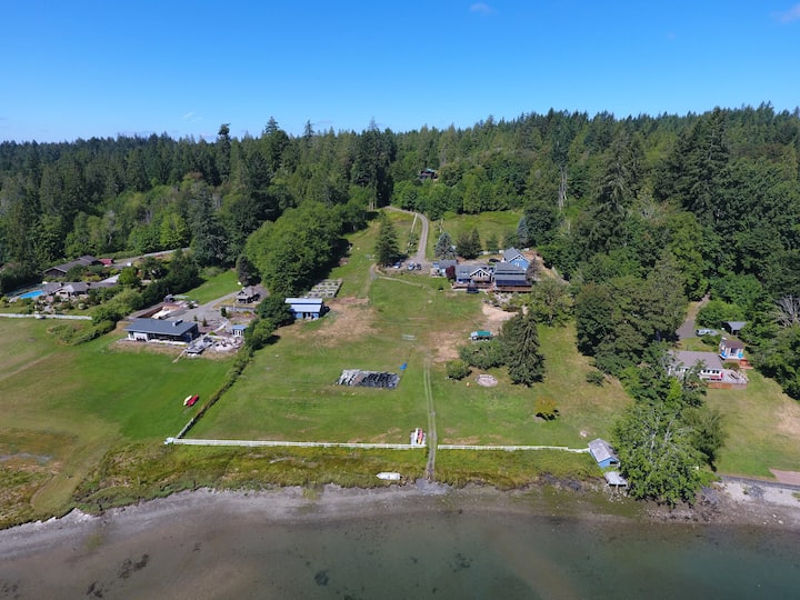 Nyumba ya Ufukweni ya Oceanfront iliyo na baraza, sitaha, beseni la maji moto, uvuvi, kuendesha kayaki kwenye ranchi kamili ya ekari 14, chaza za ufukweni (jisaidie!) ni tukio zuri la likizo. Nyumba ina mwonekano wa kuvutia wa Pickering Passage na visiwa vyake na ufukwe wa kujitegemea huko South Puget Sound! King bed in main room with fireplace, pull out sleeper queen bed and a additional whole queen bedroom "The Ocean Room". Zote zikiwa na mandhari ya kuvutia ya bahari na ufukwe binafsi wa futi 300. Tukio la mwaka mzima.