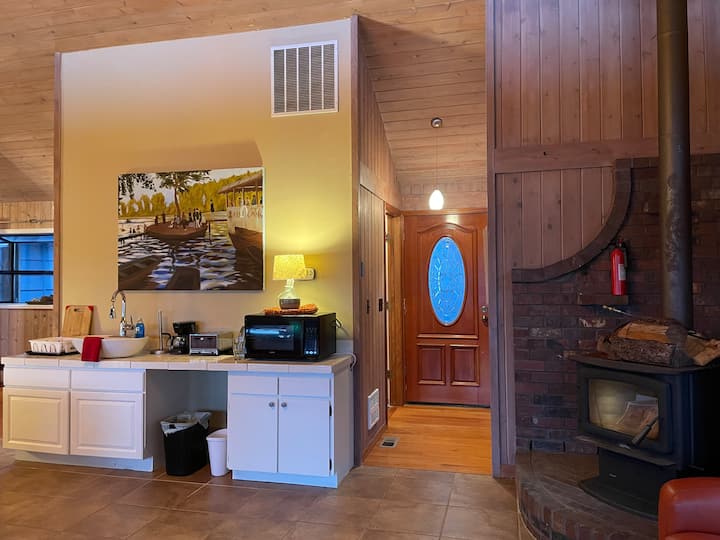 Unapofika tunaomba uegeshe upande wa kulia katika eneo kubwa la maegesho. Tunaomba kwamba usiegeshe kwenye eneo lenye lami bila ishara ya maegesho karibu na maegesho. Imewekwa kwa ajili ya kuchaji magari ya umeme na hutumiwa mara kwa mara. Kuna maegesho mengi ya ziada kwenye nyumba ya juu au kando ya njia ya gari. Ikiwa una sherehe kubwa ya watu na magari mengi wakati wa msimu wenye shughuli nyingi itakuwa vizuri kuegesha kwa njia na katika maeneo ambayo humsaidia kila mtu kuvinjari kuja na kuondoka. Ikiwa una trela au boti katika kipindi kama ilivyotajwa hapo awali tafadhali iegeshe juu na utembee chini ikiwa maegesho yamefungwa. Utakuwa na wakati mgumu kugeuza magari marefu futi 32 na zaidi hasa kwa magari mengine katika eneo la maegesho kulingana na jinsi yalivyoegeshwa. Eneo la juu la maegesho lina njia rahisi ya kuendesha gari kwa ajili ya kugeuza.