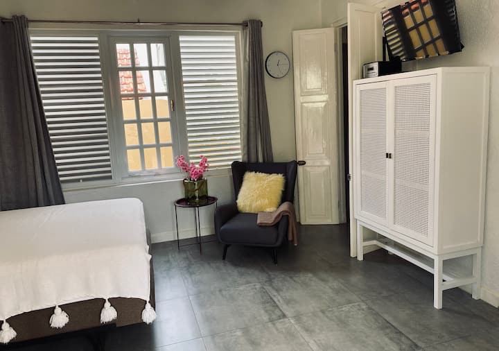 Chumba cha Palm Studio kilicho na Bwawa na Bustani ya kujitegemea