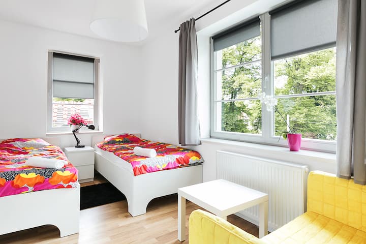 Nyumba iko katika nyumba iliyorejeshwa ya kabla ya vita, iko katika eneo tulivu la Upper Sopot. Mtaa wa Copernicus, ambapo nyumba ya tenement iko, iko karibu moja kwa moja na msitu wa Hifadhi ya Mazingira ya Tri-City, na kwa upande mwingine kuna uwanja wa riadha wa misitu. Umbali wa Monte Cassino Street ni umbali wa kutembea wa dakika 10 tu. Njiani, ukipita kituo cha Sopot Główny.