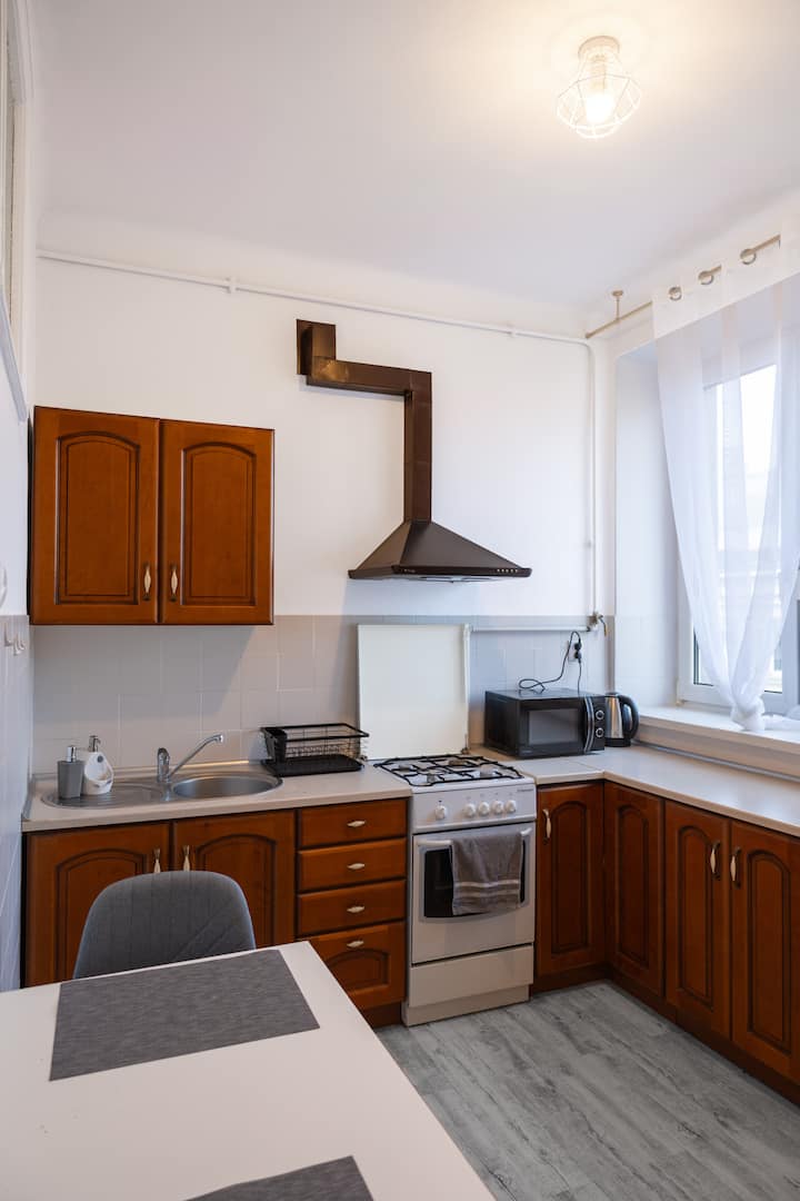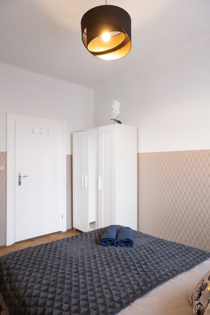 Kando ya kubuni nzuri na vifaa vya kisasa, ghorofa iko katikati ya Warsaw, kutoka ambapo unaweza kufikia vivutio muhimu zaidi ya mji mkuu katika dakika chache.