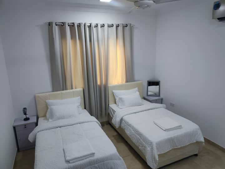 Katikati ya jiji la Muscat, karibu na uwanja wa ndege, chumba cha kujitegemea katika fleti