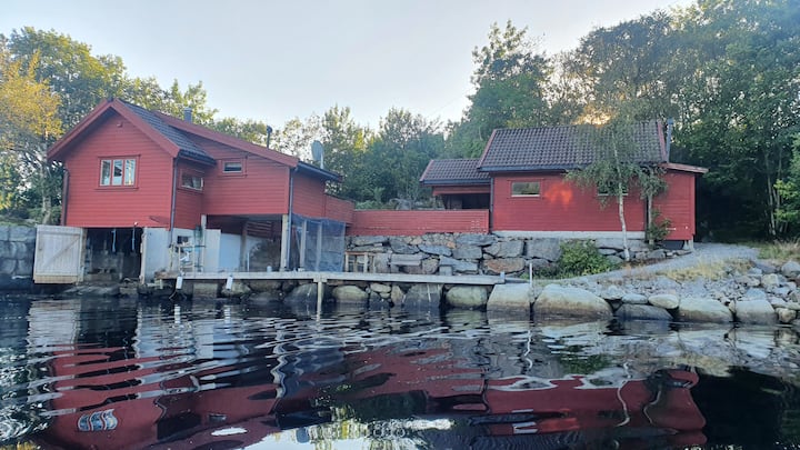 Nyumba ya mbao yenye starehe karibu na nyumba pekee ya maji ya chumvi ya Norwei.
