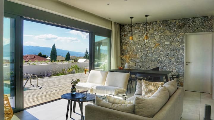 Bwawa la kujitegemea la Villa, bahari na mwonekano wa mlima vyumba 3 vya kulala
