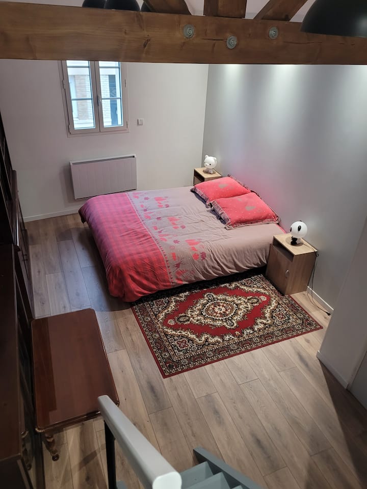 katikati mwa jiji la Le Mans wasaa, chumba cha starehe.
