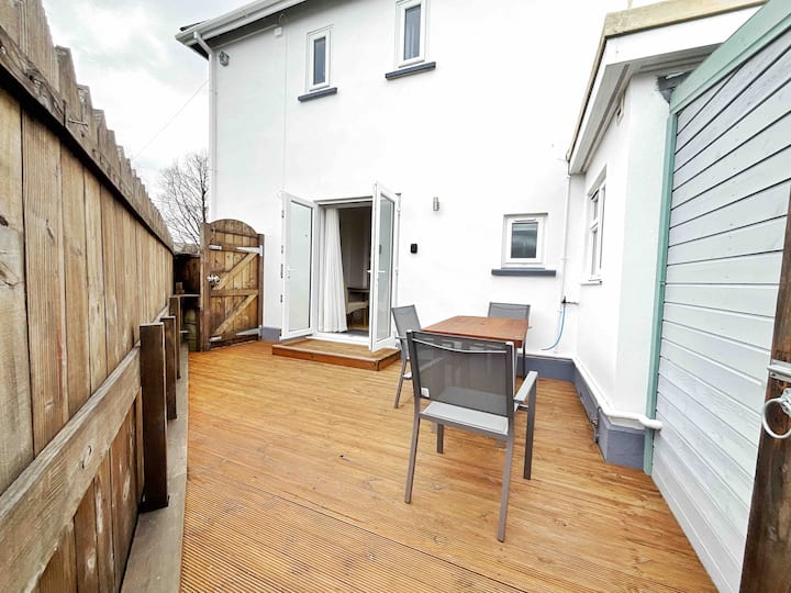 Nyumba nzima, ya kujitegemea, yenye starehe, yenye nafasi kubwa, inalala 2 katika kitanda cha ukubwa wa kifalme. Mbwa 1 anakaribishwa. Maegesho ya bila malipo. Baraza la mapambo lililofungwa, nje ya bomba. Rahisi kutembea kwa baa (mita 100!), basi kuacha, duka, Hifadhi, chip duka, mbwa kutembea, nchi kutembea, moja kwa moja kutoka mlangoni. Biker kirafiki.