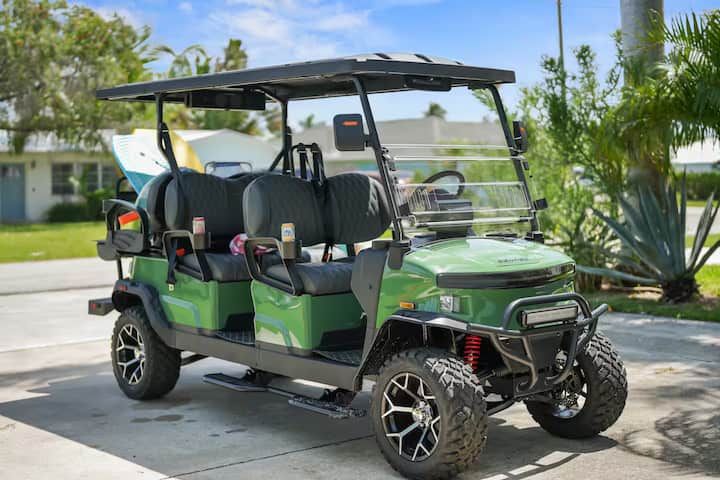 Nyumba ya Gari la Gofu/Jacuzzi/Boti Kubwa- Tembea hadi Ufukweni
