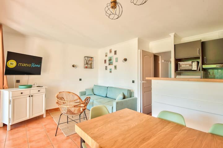 Ukaribisho mahususi na huduma bora zilizojumuishwa moja kwa moja katika bei ya upangishaji wako: mashuka, taulo, vitanda vilivyotengenezwa wakati wa kuwasili, usafishaji wa mwisho, ufikiaji wa Wi-Fi na vifaa vya matengenezo. Kila kitu kimeundwa ili kukufanya uwe na ukaaji bora!