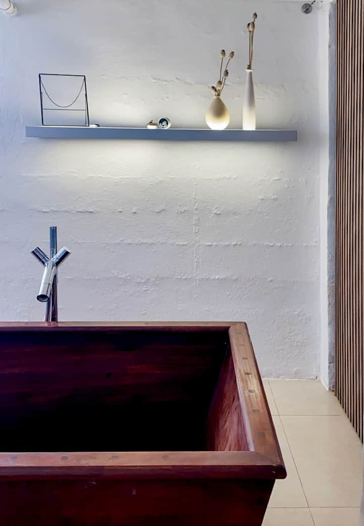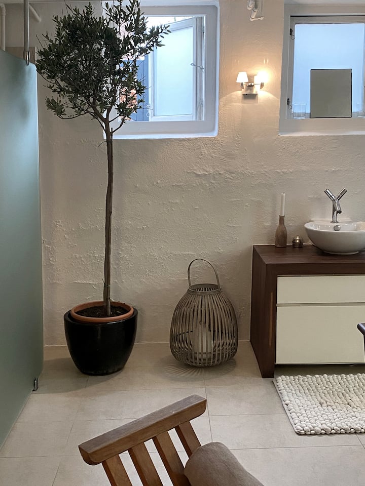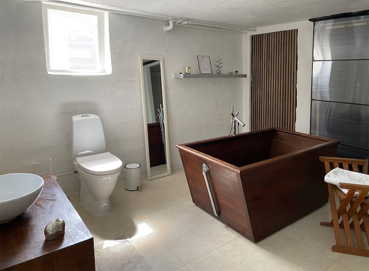 Chumba kikubwa na "spa ndogo" katika chumba cha chini angavu
