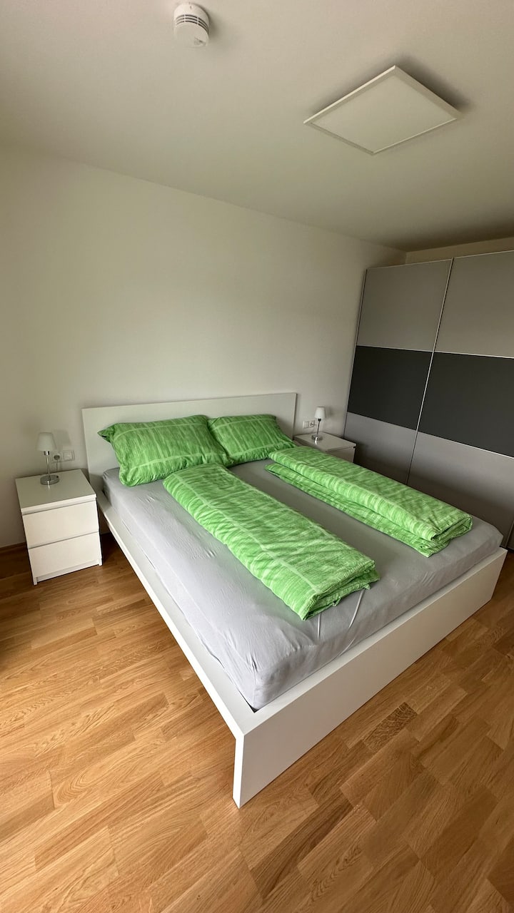 Ninapangisha fleti mpya hapa katika eneo zuri sana. Vyumba vimewekwa na mimi binafsi. Maegesho ya chini ya ardhi na mtaro wenye nafasi kubwa hujumuishwa kila wakati. Ikiwa na ukubwa kati ya mita za mraba 48-55, kila fleti inatoa nafasi ya kutosha kwa wakati wa kupumzika. Ninatazamia wageni wazuri na natumaini kila mtu atakuwa na wakati mzuri hapa.