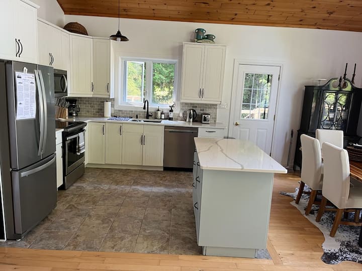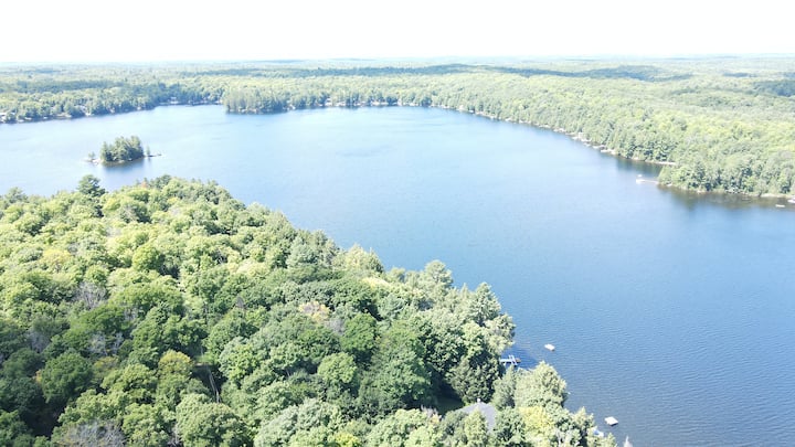 Patakatifu pa trout inaweza kuwa patakatifu pako pa siri pia! Panda kwenye mashua ya mstari na fimbo yako na urudi au utoe kwenye SUP kwenye mlango uliofungwa 101 ha oasis. Hatua za mawe zinakuchukua kutoka kwenye kizimbani cha kibinafsi cha futi 20 hadi kwenye staha na chumba cha Haliburton kwa baadhi ya kuchoma nyama na R&R zaidi. Ndani utapata TV, feni za dari na vistawishi VYOTE vya nyumbani. Jitayarishe usiku na kunyakua kuni za kupendeza kwa usiku wa s 'mores na kutazama nyota. Sikiliza... Loon ya Lakeside inaita.