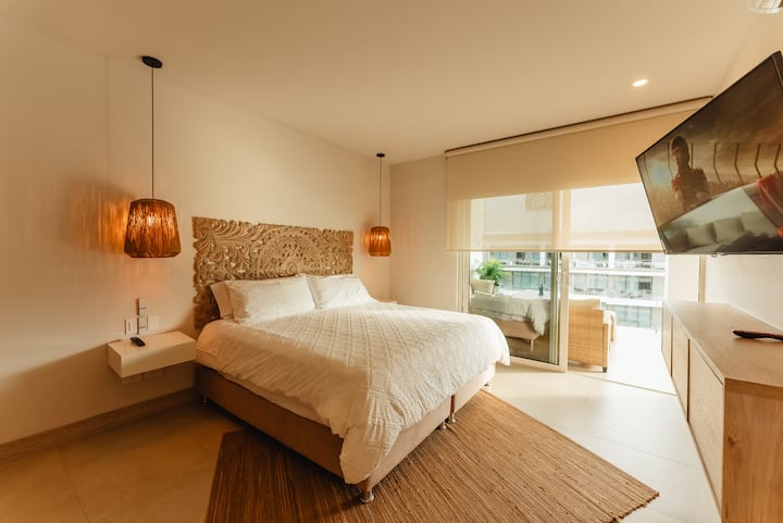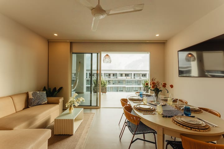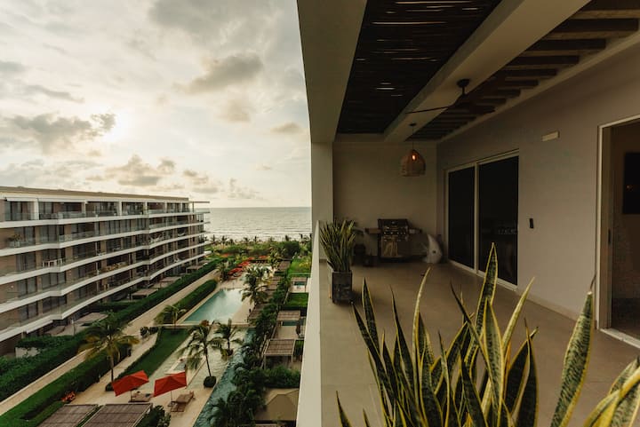 Mwonekano wa bahari wa fleti, roshani kubwa na ufukwe wa kujitegemea