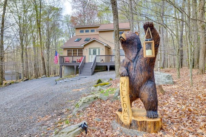 Beseni la maji moto, Chumba cha Michezo! Nyumba ya Poconos Maili 22 hadi Miteremko