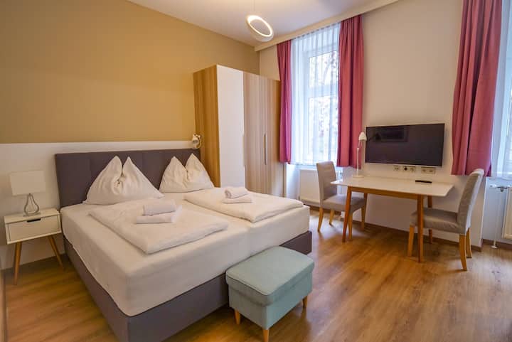 Sisi ni nyumba inayomilikiwa na familia ya bweni iliyoko katika wilaya ya 2 ya kupendeza ya Vienna, Austria. Tunatoa fleti nzuri zilizowekewa huduma na zinazohudumiwa kikamilifu kwa ajili ya wataalamu pamoja na watalii huko Vienna kwa ukaaji wowote – kuanzia Studio za starehe hadi vyumba vya kulala 2. Fleti zetu za jiji zote zina vifaa kamili na zimewekewa kila kitu unachohitaji kwa ukaaji wa kupendeza – ingia tu! Iwe ni kwa ajili yako, wafanyakazi wako, kama msafiri, au kwa ajili ya jasura zako za kitaaluma. Tumia fursa ya eneo letu bora karibu na katikati ya jiji lenye miundombinu bora na usafiri wa umma ulio karibu. Na kama wewe si hadi hatua Vienna, kupumzika katika kito yetu bora kidogo – yadi ya ndani – au ghorofa yako starehe baada ya siku busy.