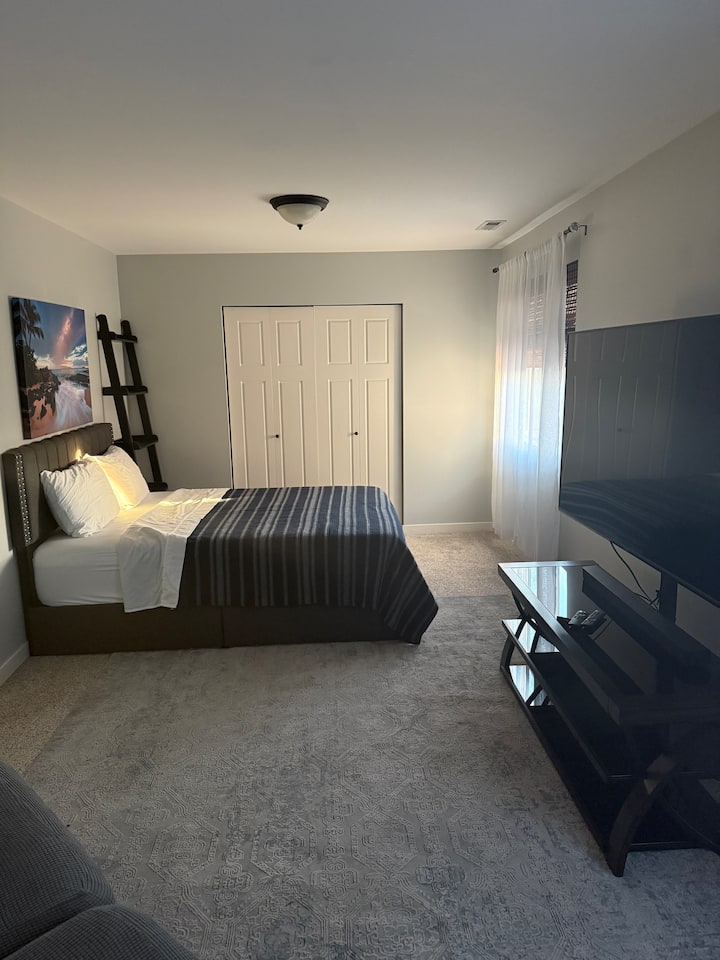 Chumba chenye nafasi kubwa w/ 65” TV – Sehemu za Kukaa za Muda Mfupi au Muda Mrefu #1