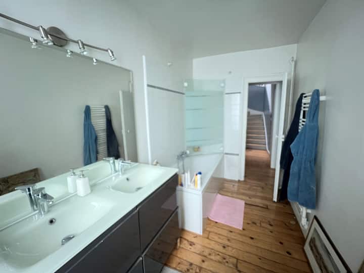 Vyumba 2 vya kulala vinapatikana (kitanda 1 cha sentimita 160 na kitanda 1 cha sentimita 140)