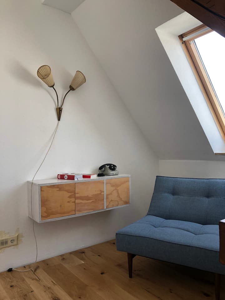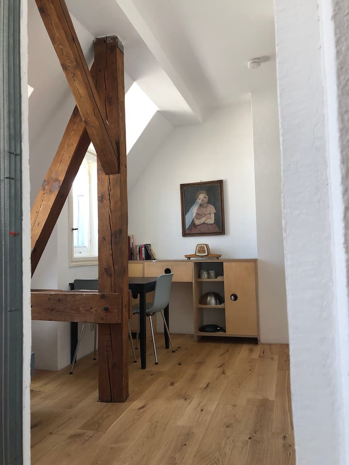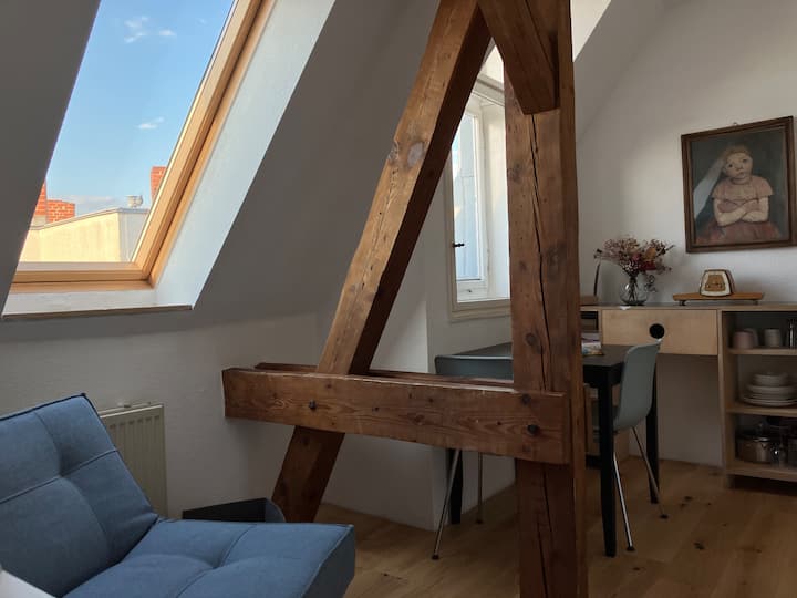 Fleti tulivu na angavu ya dari juu ya paa
