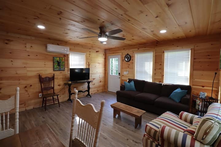 Nyumba ya mbao ya Chicory huko Maple Ridge Creek ni Inayofikika na Inafaa kwa Wanyama vipenzi ikiwa na kila kitu unachohitaji ikiwa ni pamoja na michezo ya ubao, Televisheni mahiri, Wi-Fi. Juu ya mali kufurahia Rushing Creek, Fire Pit, Game Room, Foraging & Hiking katika msitu na anga kamili ya Stars.
