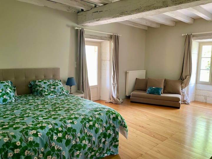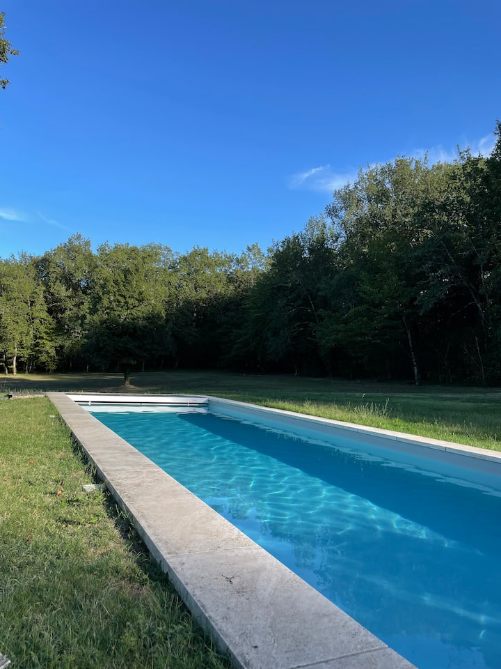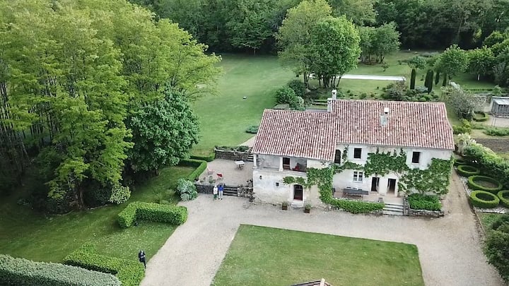 Imewekwa katika kitongoji cha kupendeza na cha amani, kilomita 2 kutoka kijiji kizuri cha La Tour Blanche (duka la mikate, mchanjaji, ofisi ya posta, wauzaji wa tumbaku na waandishi wa habari, kinyozi na kituo cha matibabu) nyumba yetu iko katika hali nzuri kwa ajili ya kugundua Perigord Vert halisi na bora ya Charente nzuri.