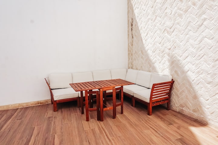 Fleti katikati yenye baraza ya kujitegemea.