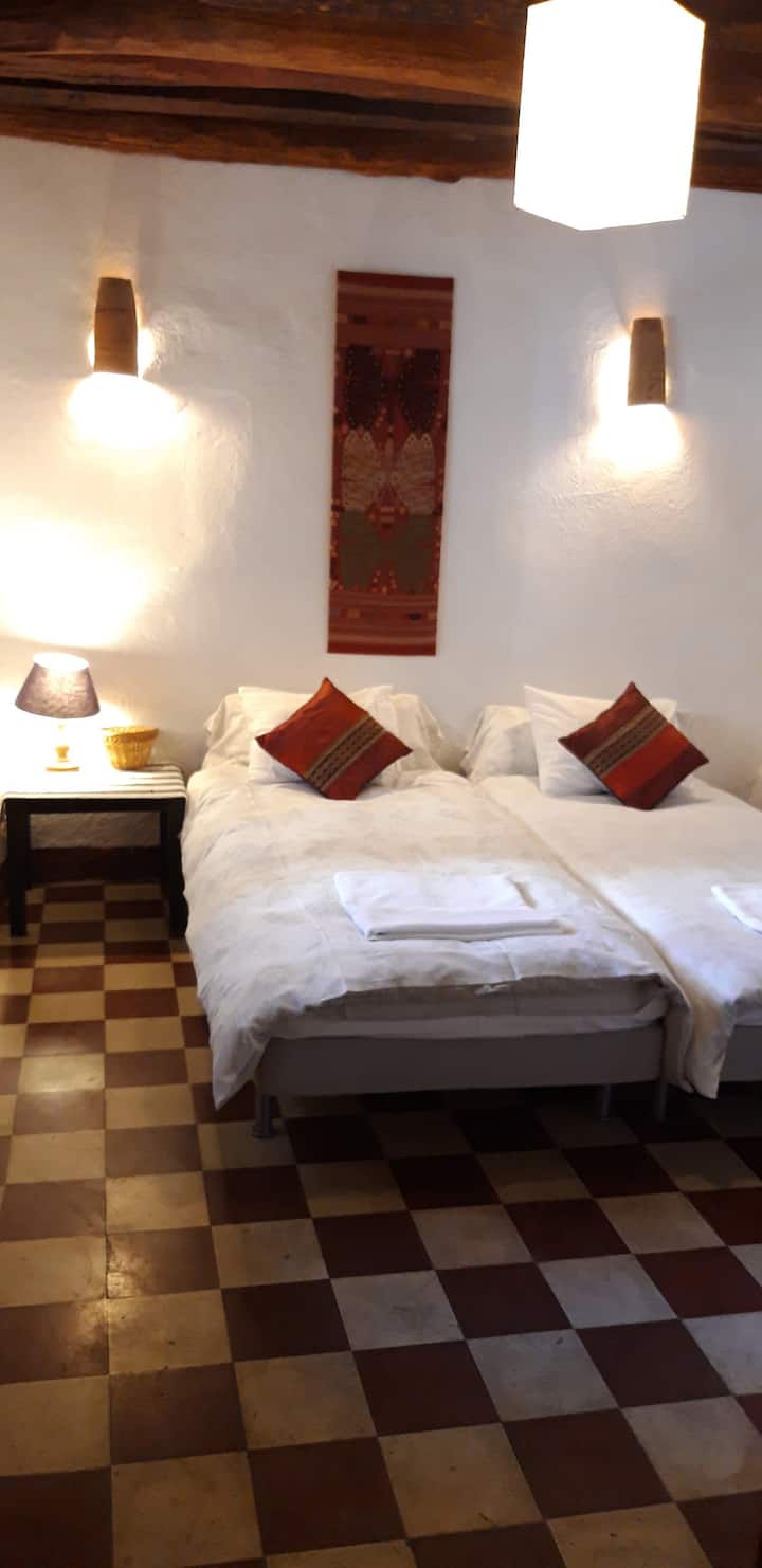 Chumba pacha kilicho na sakafu iliyokaguliwa katika nyumba ya kijiji