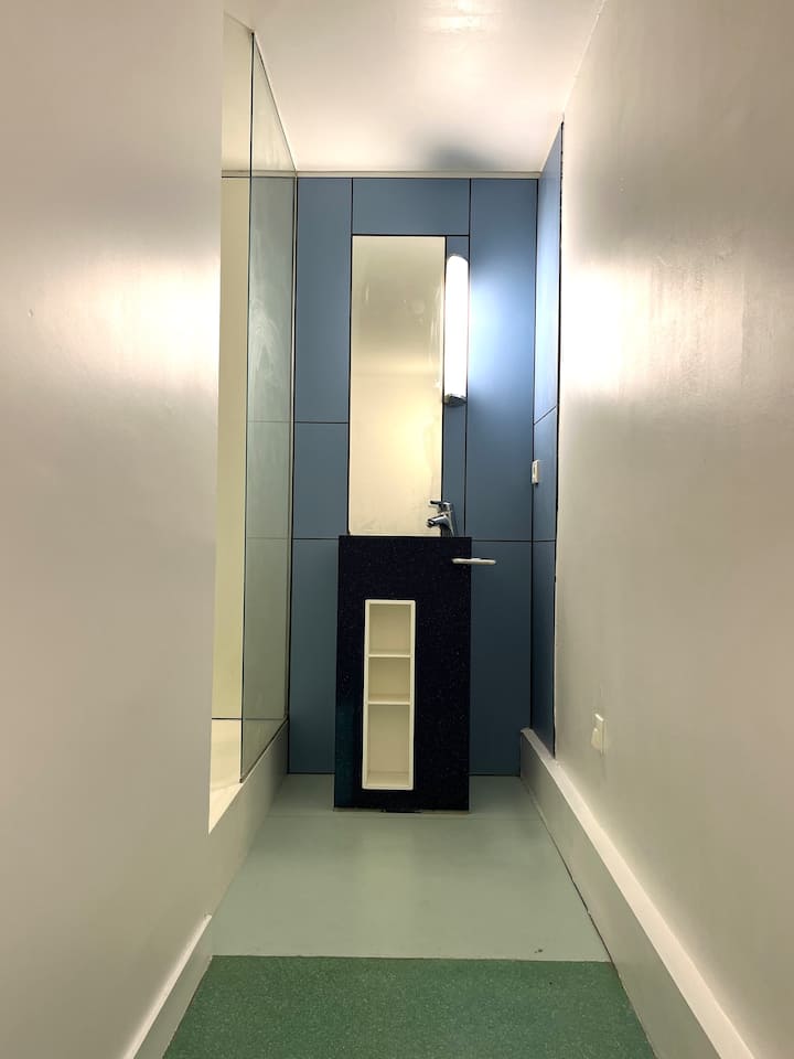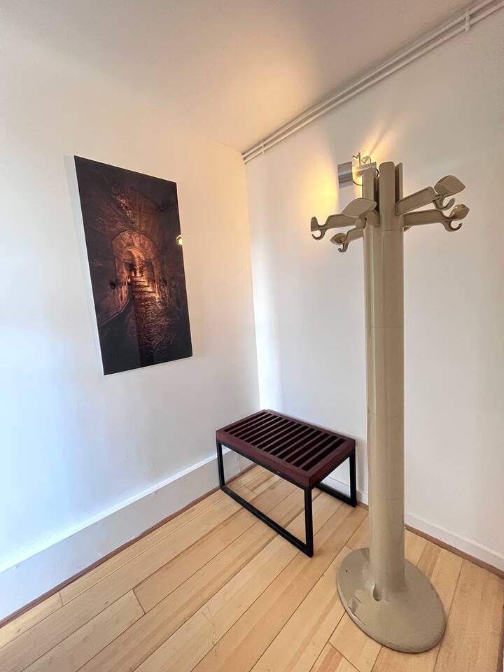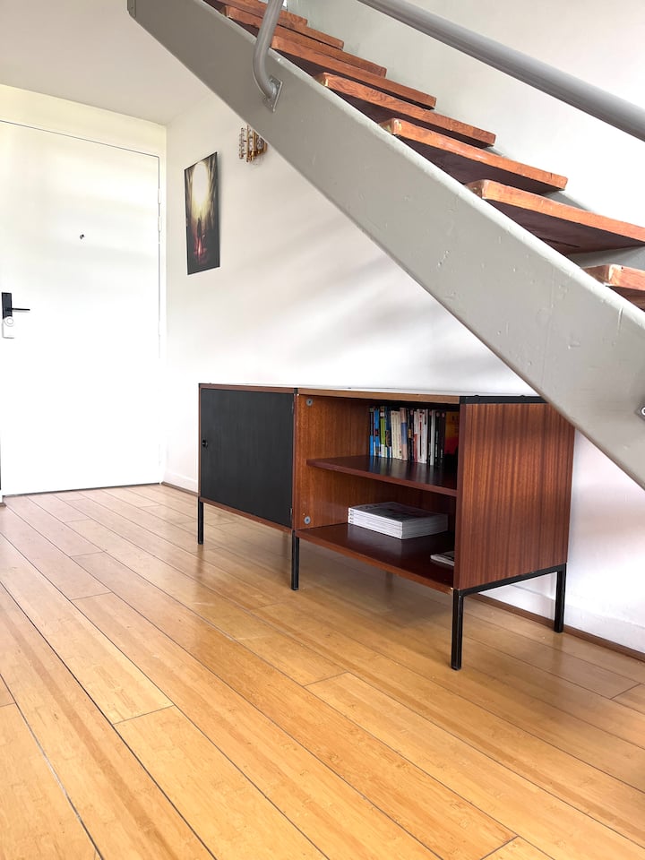 Nilirejesha fleti hii kwa kuheshimu roho ya awali ya msanifu majengo. Ni rahisi, ndogo lakini yenye mahitaji katika suala la mpangilio na mapambo. Samani zote na vifaa vya taa vimesainiwa na majina makubwa ya ubunifu. Kipekee: kipengele cha usanifu cha Jean Prouvé katika picha za mapambo na sanaa.
