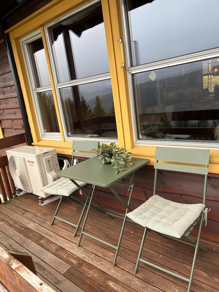 Fleti rahisi na nzuri iliyo na roshani na eneo la nje