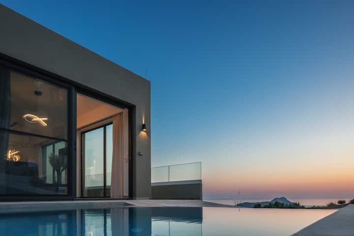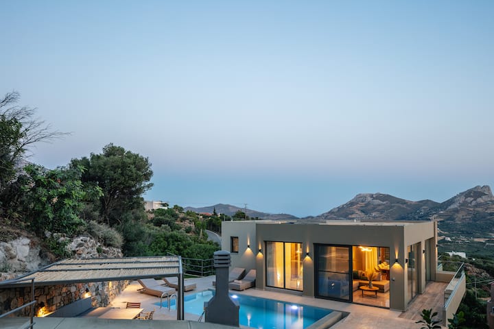 Sigma Villa inatoa bandari ya kisasa ya kifahari, iliyo na muundo wa kisasa na bwawa la kujitegemea lenye joto lililowekwa ndani ya viwanja pana. Kukiwa na vyumba vinne vya kulala vilivyowekwa kwa uangalifu vinavyokaribisha hadi wageni 8, bahari nzuri na mandhari ya milima na vistawishi kamili, inatoa mapumziko yasiyo na kifani huko Krete. Inafaa kwa wasafiri wenye busara wanaotafuta uboreshaji na hali ya juu, inaahidi ukaaji usioweza kusahaulika na wa ajabu karibu na ufukwe.