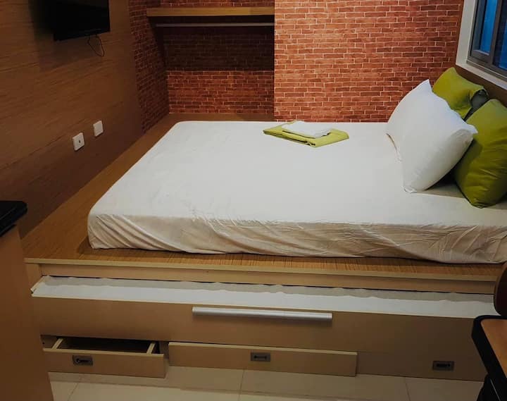Staycation / cozy starehe kukaa na hali ya hewa chumba , netflix , internet , 40 innches tv , microwave , ref , maji heater , maji boiler kwa bahati yangu , yai la kahawa nk , madirisha makubwa yanayoelekea mbele ya mtazamo wa jiji wa metro manila. Na vipofu kwenye dirisha kwa faragha yao. kamili kwa ajili ya kukaa kupumzika na mtazamo mzuri, kitengo kipya. Kondo ya nyota 5. Umbali wa kutembea kutoka sm kaskazini. 1.5hp aircon ,