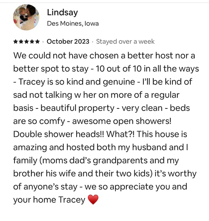 Wageni wanapenda nafasi kubwa kwenye nyumba hii kwa ajili ya ukaaji mzuri.