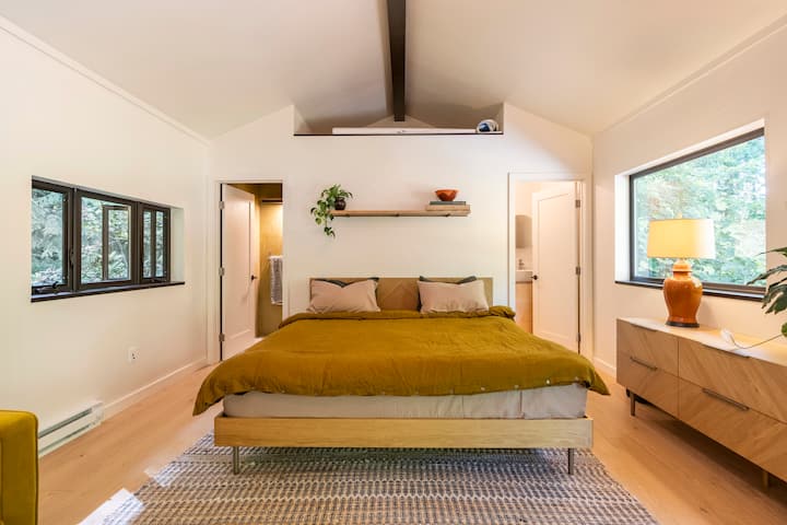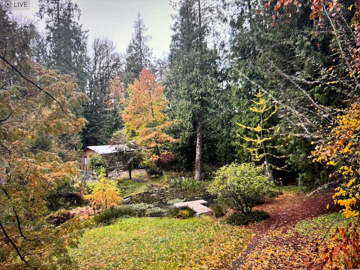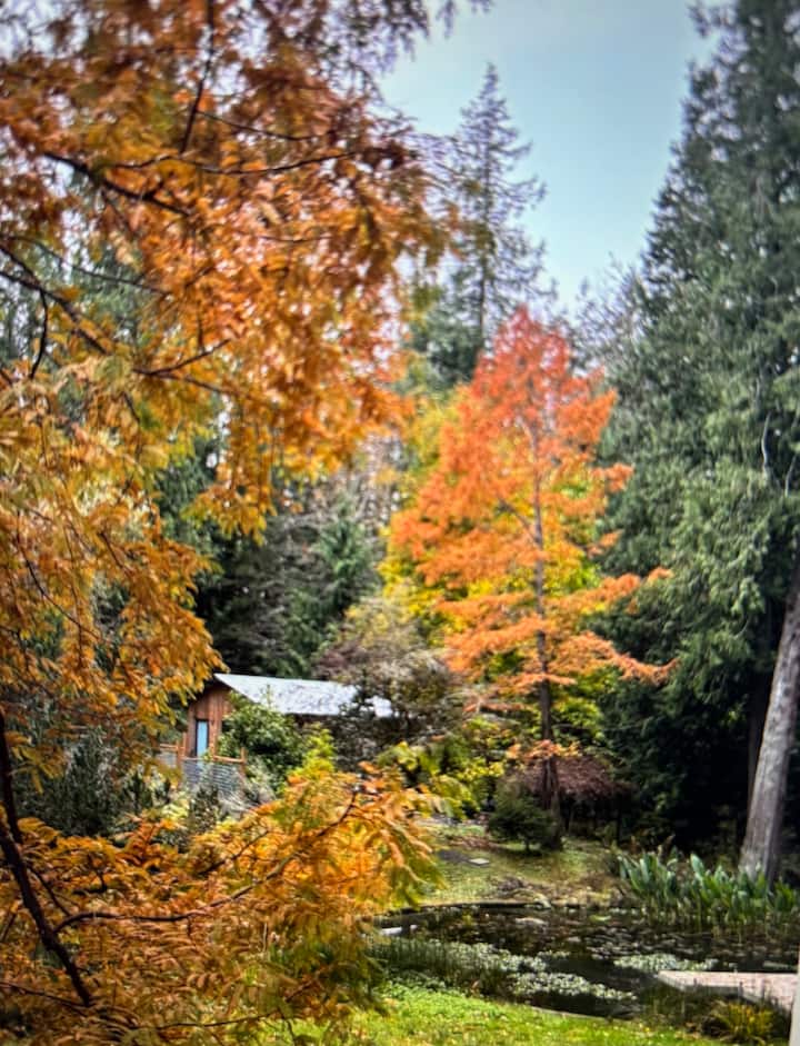 Nyumba ya Mbao ya Bustani ya Siri - Karibu na mji, vijia na ziwa