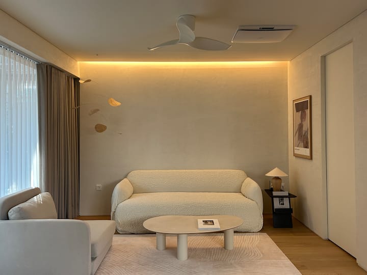 Kaa kwenye bustani [Bustani ya kujitegemea, hadi watu 3, baa ndogo iliyotolewa, maegesho ya kujitegemea, nyumba ya kujitegemea, beseni la kuogea, shimo la moto, nyumba ya mbunifu]