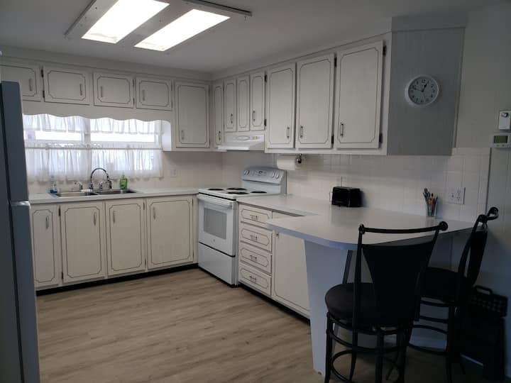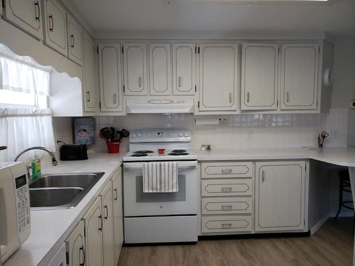 -Imetolewa: Roli 1 ya karatasi ya choo/bafuni, Roli 1 ya taulo za karatasi, viungo vya msingi (chumvi, pilipili), pakiti 2 za sabuni ya kufulia, chupa 3 za sabuni ya mkono, sabuni ya kuosha vyombo, Kifaa cha Kuoshea na Kuoshea vyombo, mfuko 1 wa takataka kwa ajili ya kopo/pipa la takataka la ndani, na Kifaa kidogo cha Huduma ya Kwanza.Wageni lazima wanunue vifaa vyao wenyewe mara baada ya vifaa vilivyo juu kuisha. Wageni lazima wanunue vifaa vyao vya kufanyia usafi. Wageni wanaweza kutumia vifaa vyovyote vya kufanyia usafi vilivyobaki kutoka kwa Mgeni au Mmiliki wa awali. Hata hivyo, Mgeni lazima atumie tu bidhaa maalum ya kusafisha sakafu iliyoidhinishwa na kutolewa, na Mmiliki.