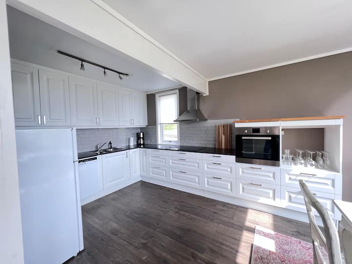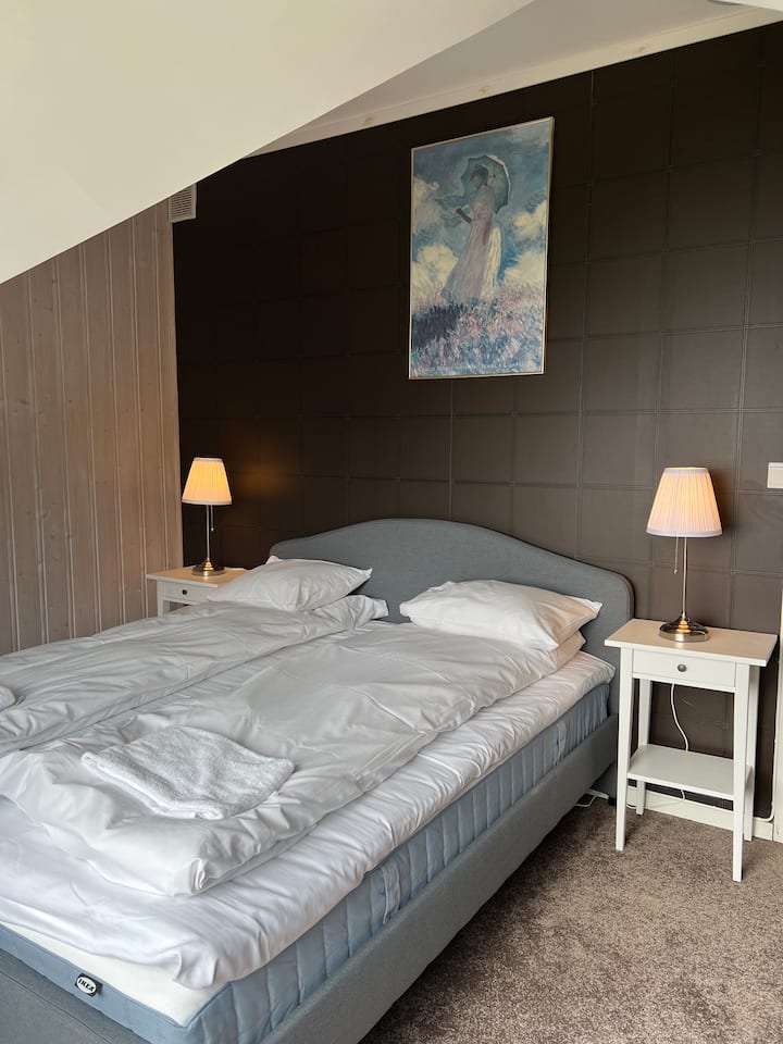 Shamba hilo limekuwa katika familia yetu kwa vizazi sita, na fleti na vyumba viwili tunavyopangisha, viko kwenye bawaba tofauti ya vila na mlango wao wenyewe. Pia tuna fleti yenye vyumba viwili vya kulala katika shamba kuu tunalopangisha - Moldegaard Estate Suite. Vyumba vyote viwili vina mtazamo juu ya fjord.