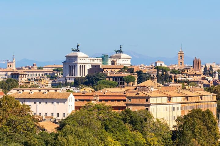 Ukiwa sebuleni, unaweza kufikia mtaro wenye nafasi kubwa ambapo unaweza kupendeza mandhari nzuri ya jiji: Piazza Venezia, Kilima cha Capitoline, Trinità dei Monti na mengi zaidi!