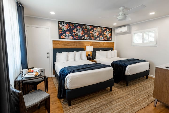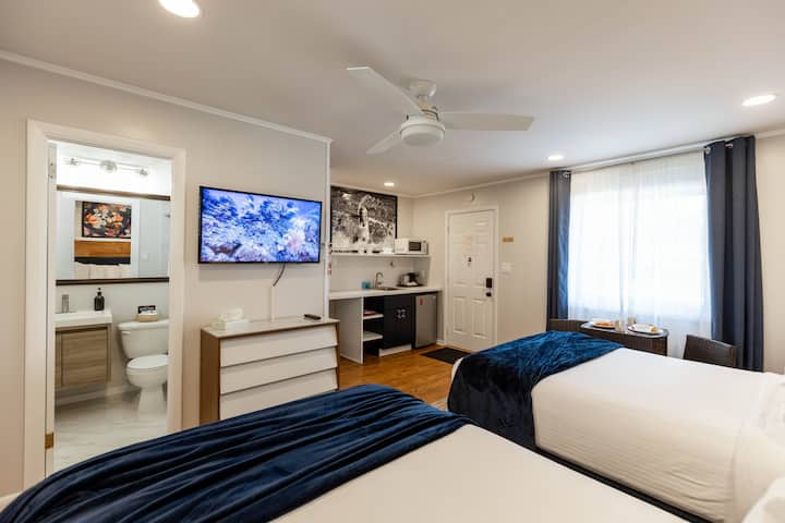 Tunakabiliwa na Shinnecock Bay na tunatoa eneo la kibinafsi la ghuba ya pwani kwa wageni wetu pekee. Hapa, unaweza picnic kwenye sod, kucheza kwenye mchanga, kwenda kuvua samaki au kufurahia siku yako nje ya maji na kayak ya msimu kwenye nyumba za kupangisha na nyumba za kupangisha za paddleboard. Wazazi wanaweza kukaa kwenye viti vya adirondack huku watoto wao wakichunguza mawazo yao kwenye uwanja wa michezo. Kwa wale ambao ni mashabiki wa kuchoma nyama nje, meza za pikiniki na vituo vya kuchomea gesi vimewekwa karibu na nyumba. Piga mbizi kwenye bwawa la msimu au uwe mtoto tena ukiwa na michezo ya uani yenye uhakika wa kukuwezesha kukaa kwa muda. Furahia kahawa yako na utazame mawio ya jua kwenye sitaha yako au upumzike na upumzike huku ukiangalia machweo kwenye ufukwe wetu binafsi wa ghuba. Vyumba vyote ni vya kawaida vyenye sufuria ya kahawa na vikolezo, friji ya urefu wa kaunta na mashine ya mvuke ya mkononi inayopatikana unapoomba. Wi-Fi na maegesho ya bila malipo pia hutolewa.