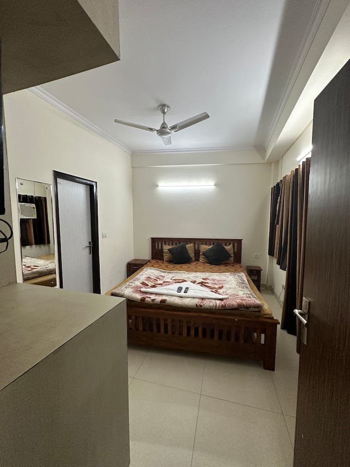 1BHK Fleti iliyowekewa samani w/ Jiko Utensil AC TV Fridge