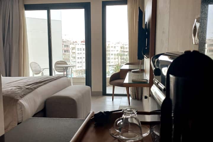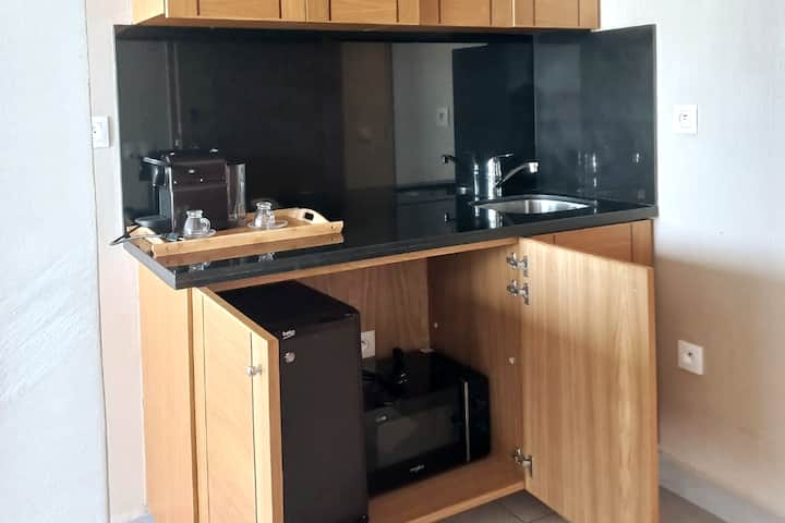 Studio za zamani na maridadi, Studio ni kati ya 35 na 38 m2. Vitanda vya ukubwa mmoja au vya kifalme, bafu la marumaru, chumba cha kupikia kilicho na vistawishi vyote.