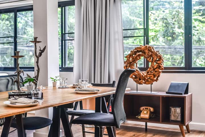 70sqm utulivu Studio King kitanda katika Sathorn 800m kwa mrt