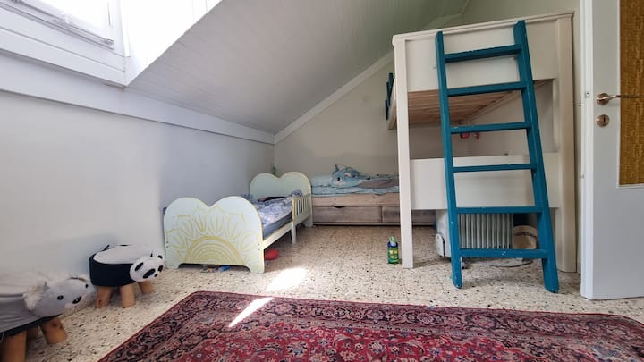 vitanda2 vya ghorofa, kitanda1 cha mtoto mchanga, kitanda1 cha mtoto
