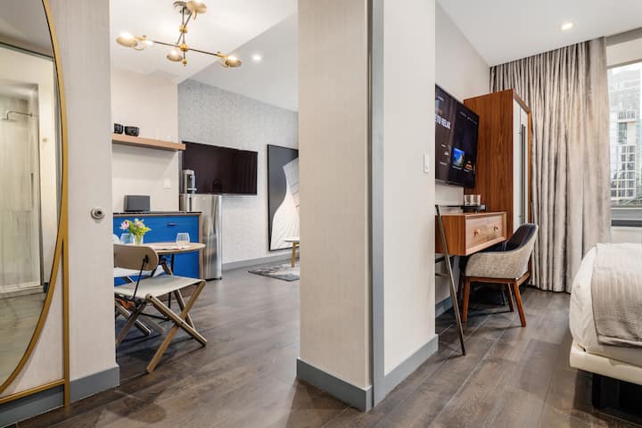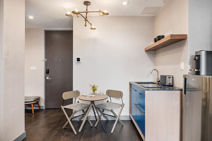 Kazi yangu: Nyumba zetu zina samani zote na zina kila kitu unachohitaji kwa ajili ya ukaaji bora. Hii ni pamoja na vyombo vya kupikia na vyombo jikoni, mashuka na taulo chumbani, vifaa kama vile kikausha nywele, flatiron na ubao wa kupiga pasi na sehemu ya kwanza
