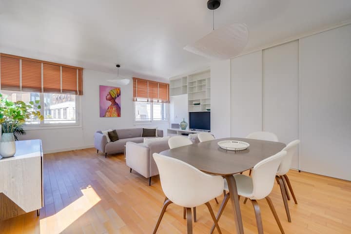 Wakala wa Cocoonr hukupa kufurahia ukaaji wa kipekee katika fleti hii nzuri ya m² 145 (yenye lifti), yenye nafasi kubwa, angavu na ya kupendeza sana, yenye makinga maji matatu. Ipo kwenye Promenade Sainte Catherine, fleti hii maradufu inakupa kiwango cha juu cha maisha na eneo la kipekee la kijiografia. Le Sainte Cath' ni bora kwa ajili ya biashara au ukaaji wa familia na hutoa kila starehe, kuchanganya kisasa na haiba ya ulimwengu wa zamani kwa ukaaji wa kipekee huko Bordeaux.