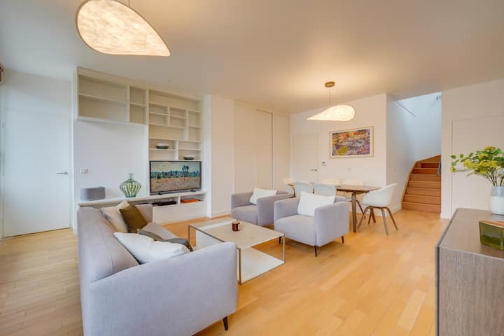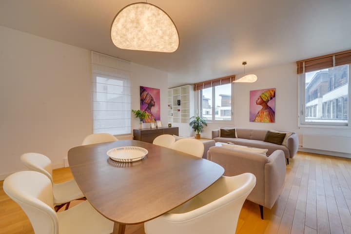 Furahia ukaaji wa kipekee katika fleti hii nzuri ya m² 145 (yenye lifti), yenye nafasi kubwa, angavu na ya kupendeza sana, yenye makinga maji matatu. Ipo kwenye Promenade Sainte Catherine, fleti hii maradufu inakupa kiwango cha juu cha maisha na eneo la kipekee la kijiografia. Le Sainte Cath' ni bora kwa ajili ya biashara au ukaaji wa familia na hutoa kila starehe, kuchanganya kisasa na haiba ya ulimwengu wa zamani kwa ukaaji wa kipekee huko Bordeaux.