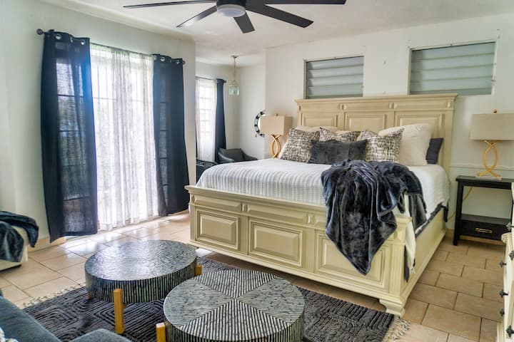 Pata uzoefu wa uzuri wa milima ya Puerto Rico, ambapo likizo takatifu au mapumziko yanasubiri. Eneo hili lenye urefu wa futi 2,500, lina joto la 10° kuliko kisiwa chote, likiwa na hewa ya mlimani yenye kuburudisha na unyevu mdogo. Ukiwa umepumzika nyuma ya mlango ulio na njia ndefu ya kuendesha gari, hutaona nyumba zozote za karibu, zikitoa hisia ya kweli ya faragha na utulivu. Kila maelezo yamepangwa kwa uangalifu kwa ajili ya starehe yako. Feni za dari katika nyumba nzima huhakikisha mazingira mazuri, yenye upepo na maeneo mengi ya kukaa hualika starehe na mazungumzo.