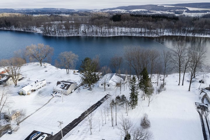 Sehemu ya kukaa isiyosahaulika inasubiri kwenye nyumba hii binafsi ya ufukwe wa ziwa. Nyumba ya ufukweni imerekebishwa vizuri na umaliziaji wa hali ya juu na ina vifaa vya kisasa, ikitoa mchanganyiko mzuri wa anasa na utulivu. Anza siku yako na kahawa kwenye sitaha kubwa ya nyuma na uimalize kwa moto wa kambi unaoangalia ziwa.