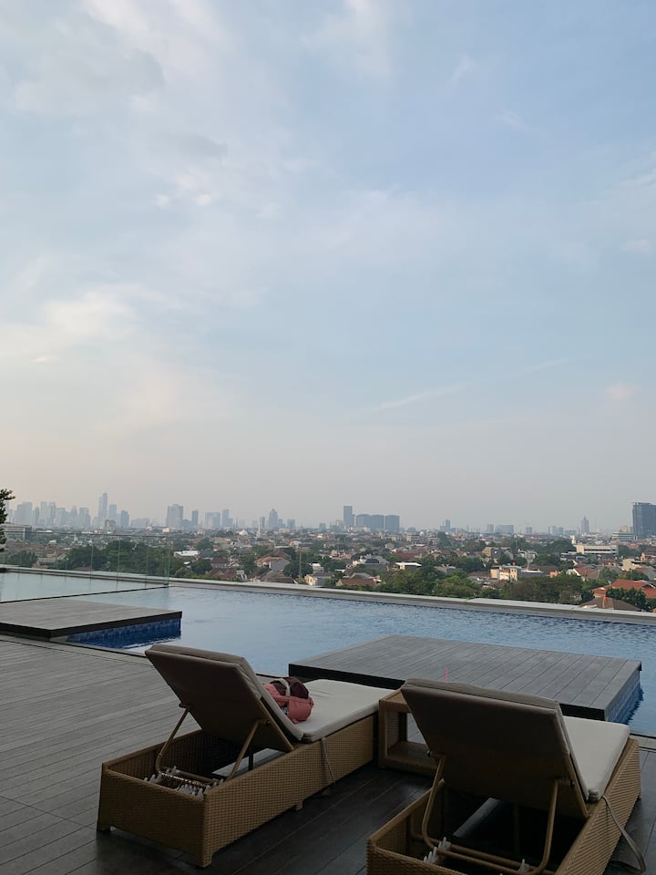 Fleti yenye starehe huko South Jkt na Infinity Pool na Netflix
