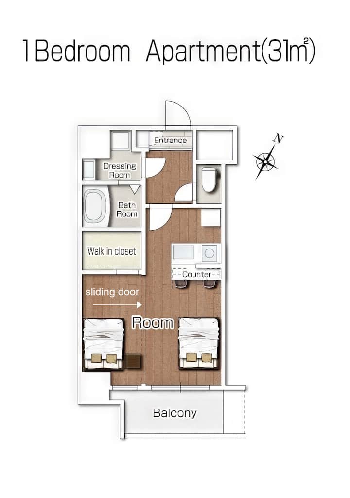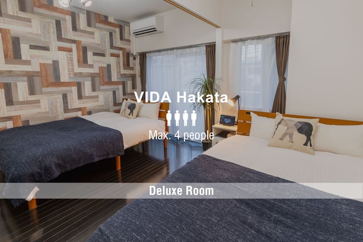 [VIDA Hakata] Chumba cha kifahari chenye vitanda viwili, jiko na mashine ya kufulia. Hakuna uvutaji sigara