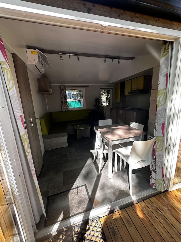 Nyumba inayotembea yenye kiyoyozi iliyo na televisheni